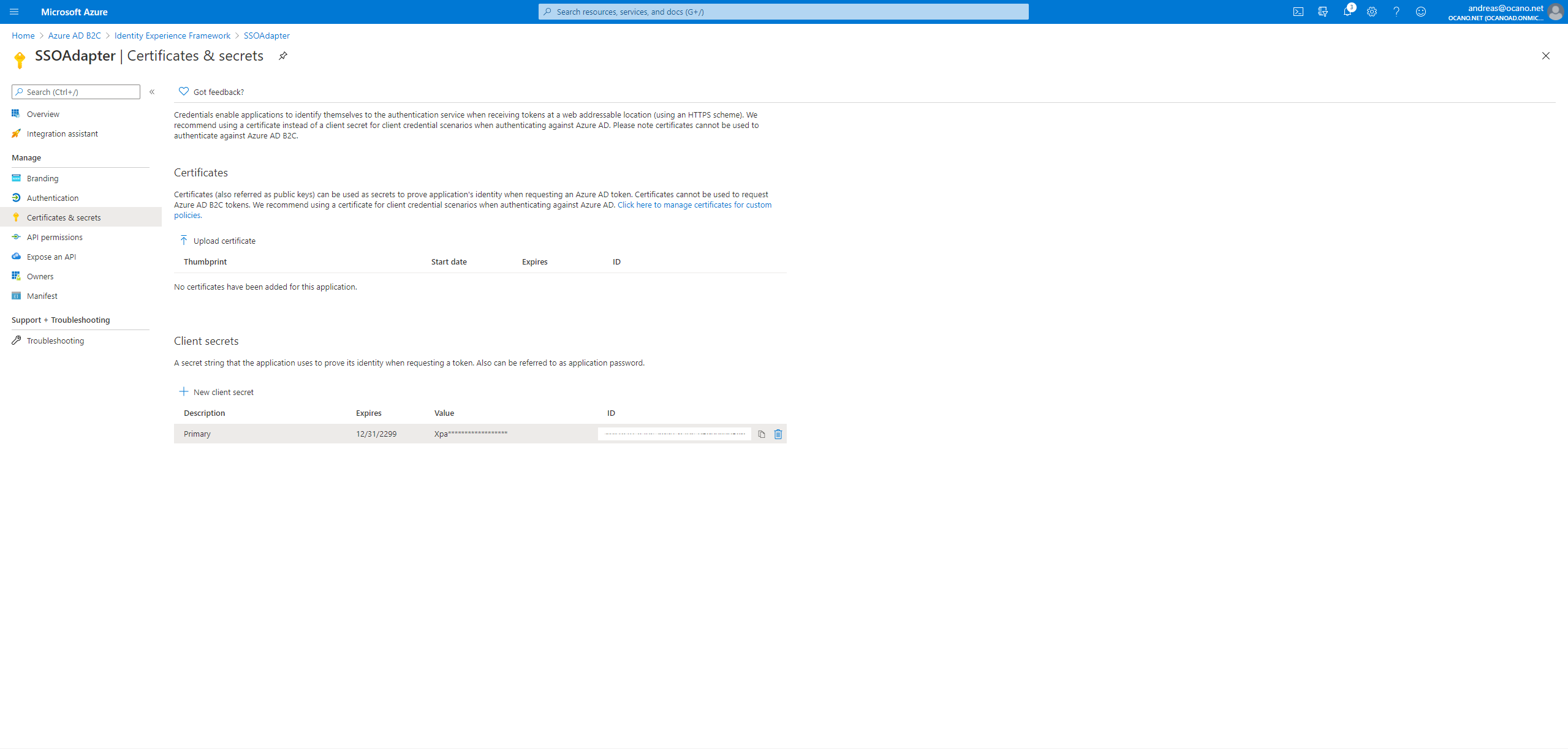 I set the client secret to never expire. In a production environment, you should consider setting an expiration date.